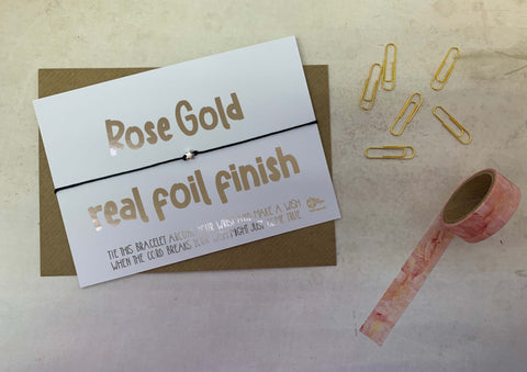 The card will either be printed onto white or kraft card and will be printed in black ink or finished with rose gold or gold foil depending on the options you choose.