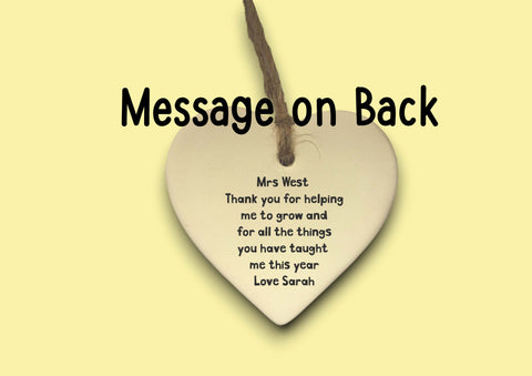 You can also choose an additional message on the back, please select the personalised option and enter details of what you require at checkout. This will be printed to the back of the heart. We cannot print an additional message on the back if you do not select and pay for this service.