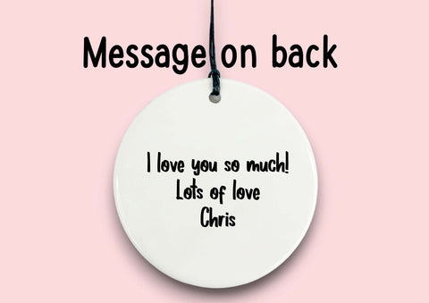 This will be printed to the back of the circle. We cannot print an additional message on the back if you do not select and pay for this service. If you do not choose this, the back will be blank.