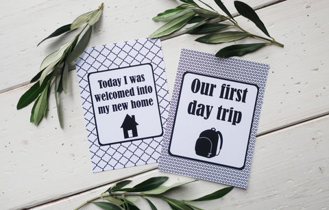 Pack of Adoption Journey cards to celebrate 15 key events and firsts during the adoption process and the early days as a new family. Ideal for taking photos  to record special moments and share with friends and family.