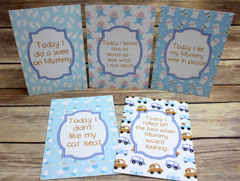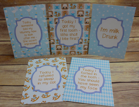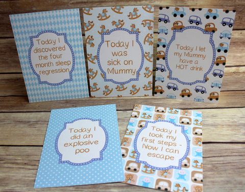 Alternative Baby Journey Cards in our Blue Retro design to help celebrate your journey through life's milestones and funny moments. These make a unique and alternative gift for a friend or relative for a baby shower or for someone who has just had a baby.