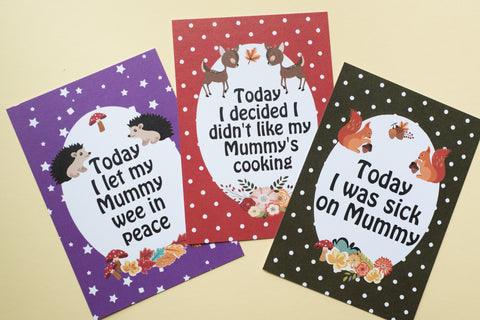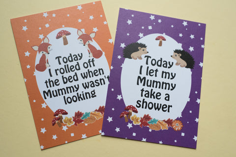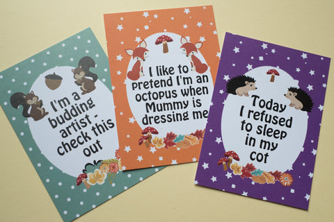 Alternative Baby Journey Cards in our Forest Animals design to help celebrate your journey through life's milestones and funny moments. These make a unique and alternative gift for a friend or relative for a baby shower or for someone who has just had a baby.
